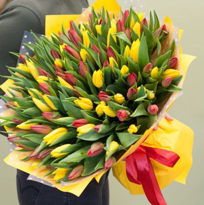 101 красный и желтый тюльпан | Купить букет в Фукуоке