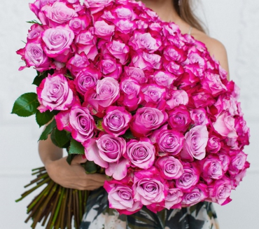 Букет из 101 сиреневой розы Deep Purple под ленту
