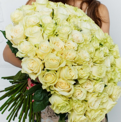 Эквадорские розы мондиаль белого цвета. Возможен слегка зеленоватый оттенок (такой сорт).