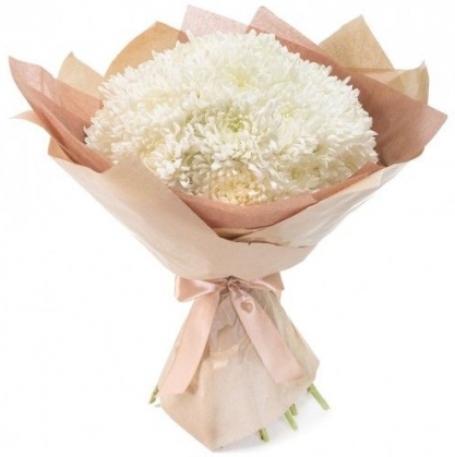 Букет собраный из одиночной хризантемы и стильно упакован в матовую бумагу
