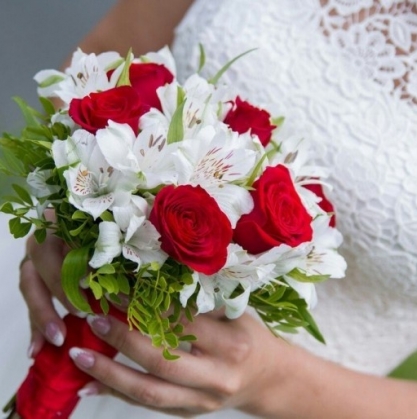 Восхитительный, нежный букет невесты из роз и альстромерий, с добавлением зелени фисташки. Бутоньерка и пакет лепестков в подарок!