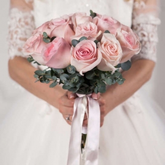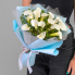 Шикарный букет из белых калл, увеличенный в размере за счет веток фисташки. Упаковку бирюзового цвета можно поменять на любую по вашему выбору.
