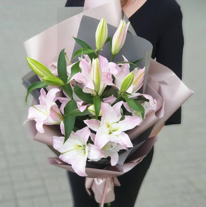 Букет из 5 розовых лилий | Купить в Фукуоке