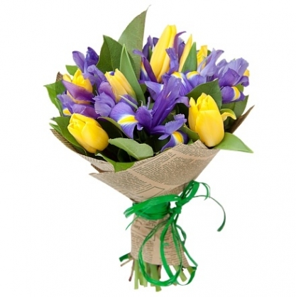 Желтые тюльпаны и ирисы | Купить в Фукуоке