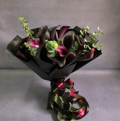 Купить каллы баклажанового и малинового цвета в Фукуоке