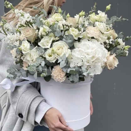 Оригинальная композиция из экзотических цветов. В состав букета входят: гортензии, лизиантусы, диантусы, статица...