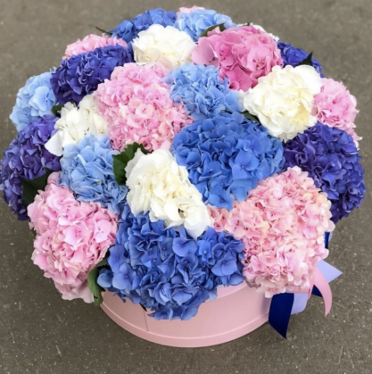 Шикарная коробка из большого количества гортензий. Композиция рассчитана от 25шт.