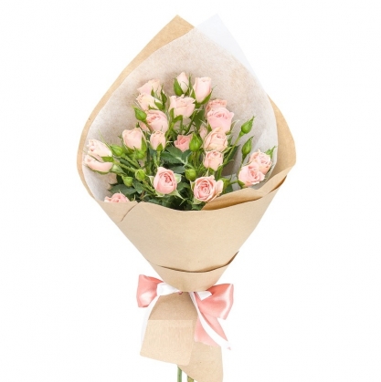 Кустовые розы в стильной крафт упаковке с фетром
