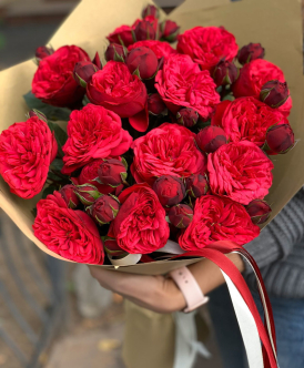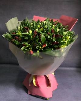 Букет из 51 бордового пиона в упаковке