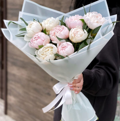 Букет из 9 красивых пионов