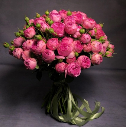 Букет из кустовых пионовидных роз украшеный лентами