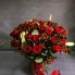Стильная композиция с розами и гиперикумом "Страстный вечер" | Купить в Фукуоке