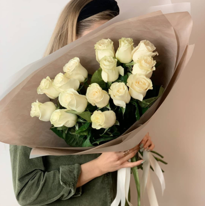 Букет "Светлые мечты" из 15 белых роз | Купить в Фукуоке