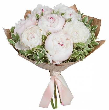 Букет из пионов с питтоспорумом в упаковке | Купить в Фукуоке